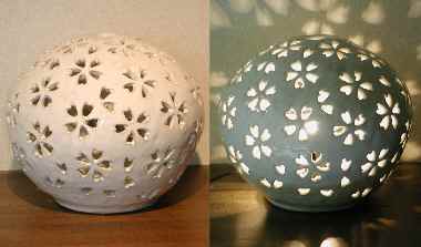 絵付けや掻き落しはいつも下書きなしのブッツケ本番。今回もかわいらしい一品が出来上がりました。つまみはリボンになっています。