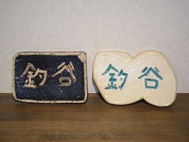 | 作者★東畠くん おばあちゃんの為にと作った表札。右側の青い文字は彫った所にガラスを溶かし込んであります。一生懸命土をたたき締めたかいあってひび割れなしでしたъ( ゜ー^) |