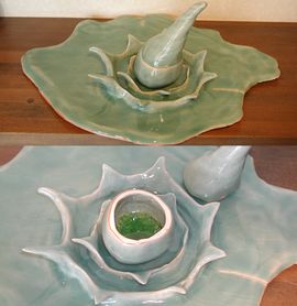 作者★田渕さん 実は以前にも同じデザインの鉢を作られているんですが、どうしても色が納得出来ないという事で今回作り直されました。僕は前回のもイケテルと思いますよ(^_-)v |