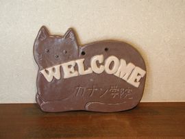 | 作者★渡辺さん 学習塾をご家族でなさっている会員さんで、welcomeボードですね。写真を撮り忘れたんですが、実は裏側にもネコの顔があります(=^・ェ・^= )ノ |